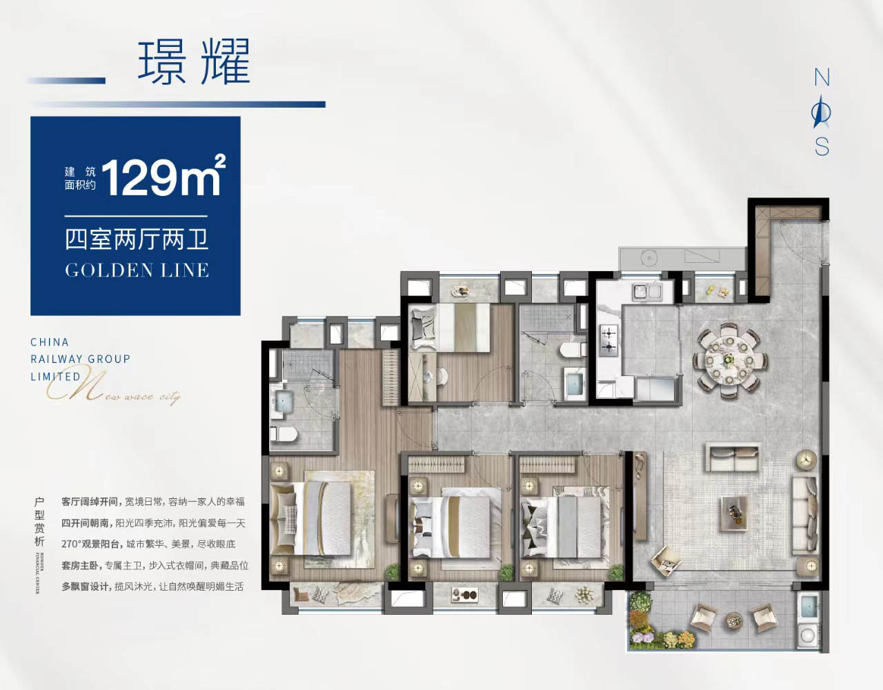 中国中铁•诺德璟宸深谙临港人居需求,以引以为傲的诺德幸福+生活体系为基础,匠心打造建面约89—129㎡幸福+菁智住区,全生命周期户型,空间布局合理,功能与尺度兼顾,满足不同客群、不同生活阶段的居住需求,赋予生活更多生命力。”