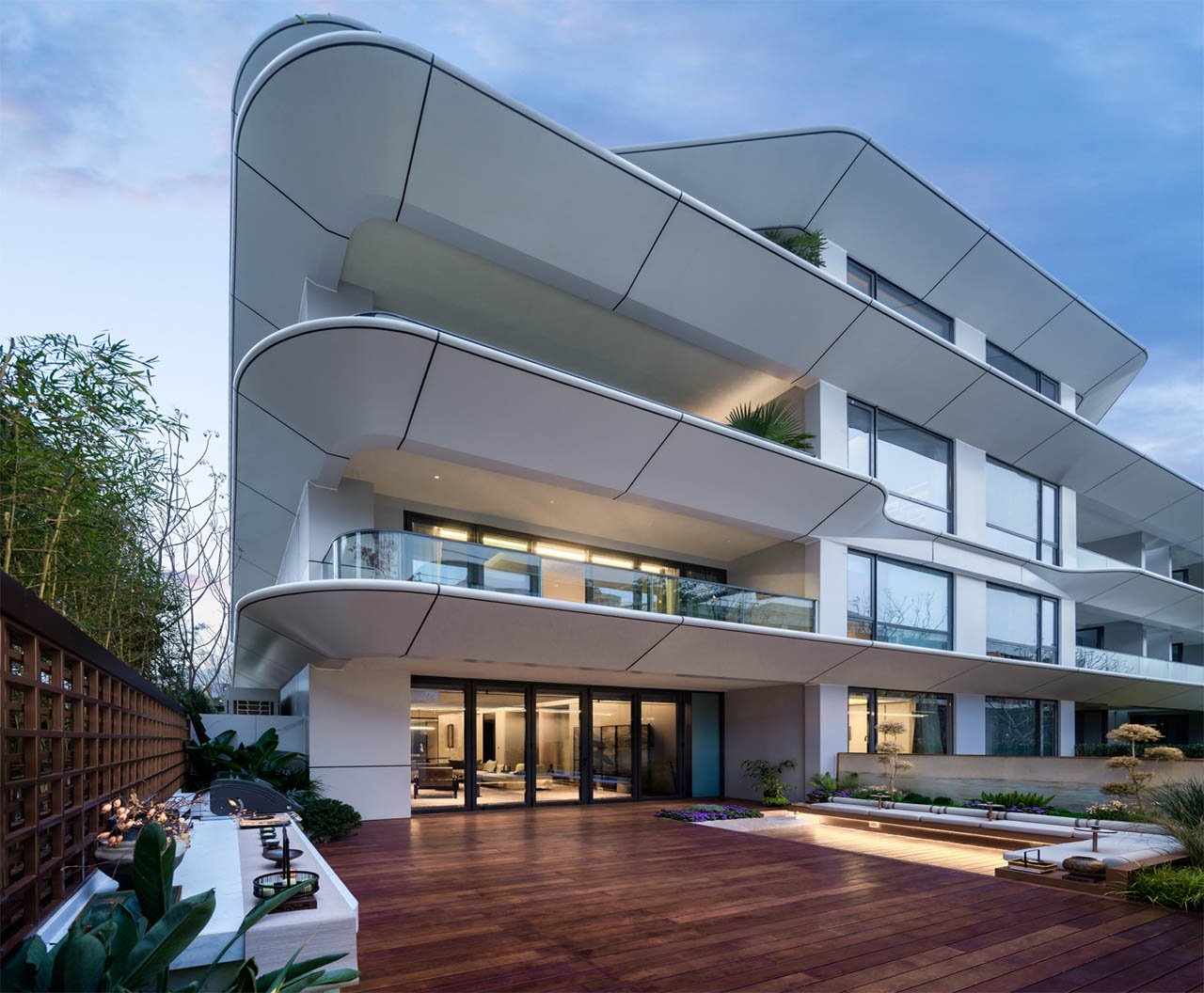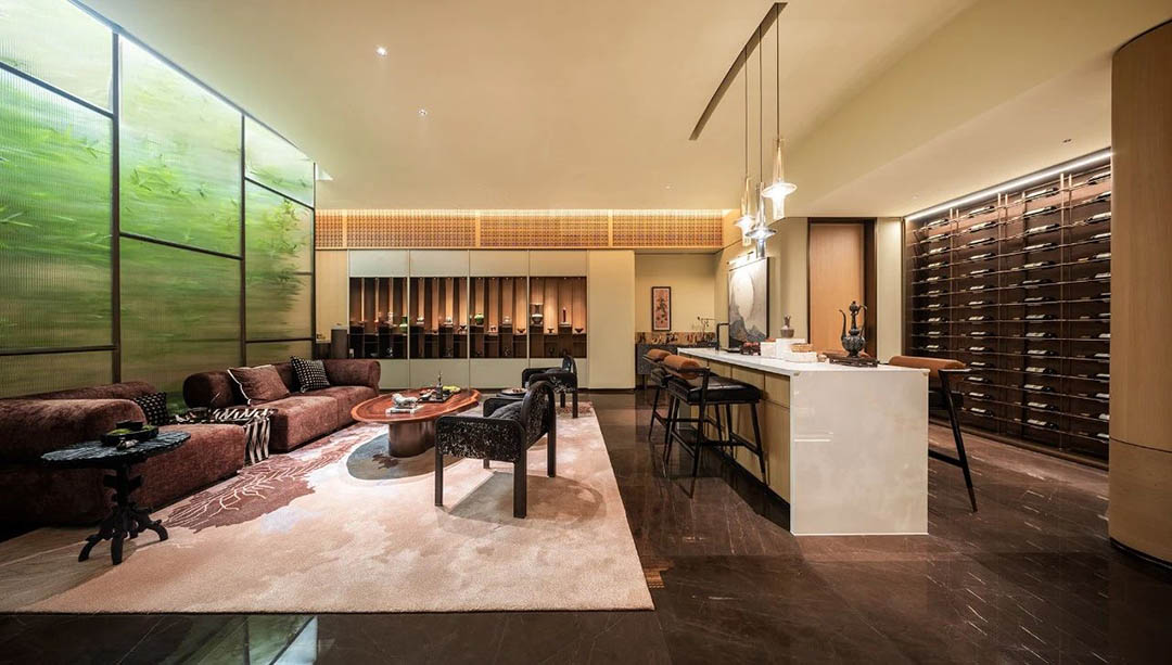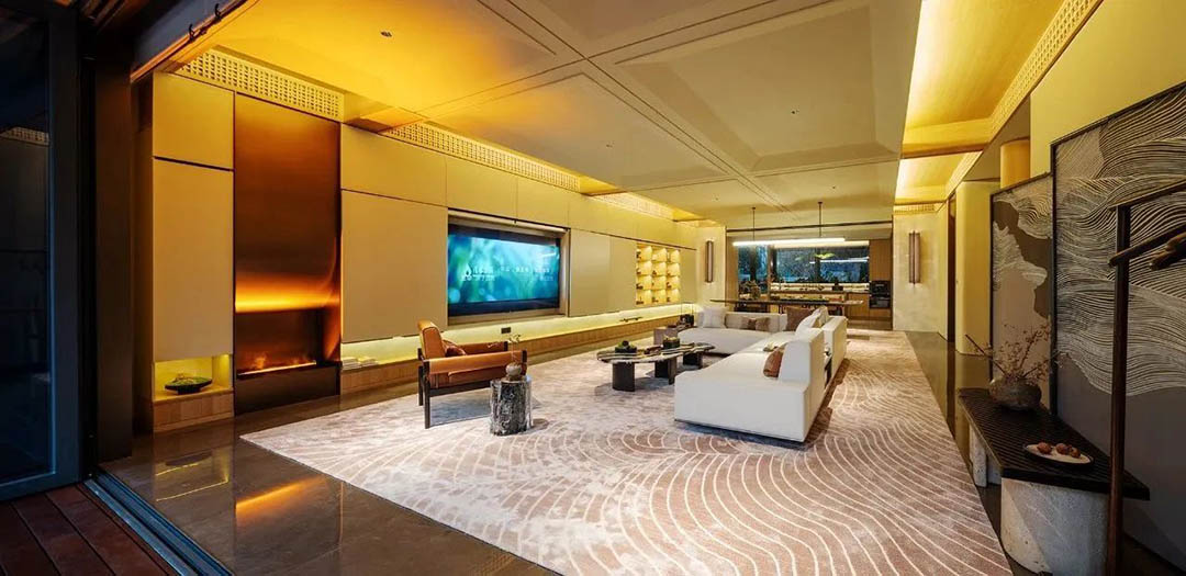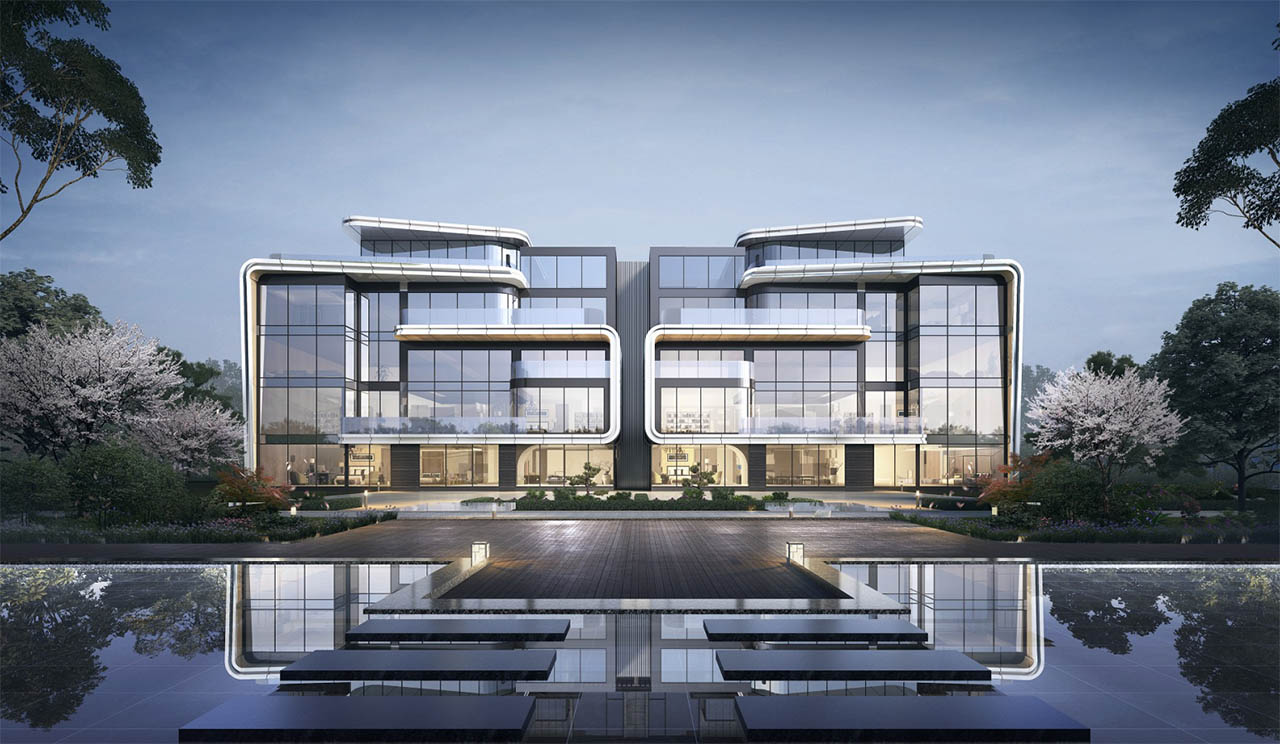 融合山水人城,犹如生长在公园里。整体占地约320亩,容积率仅约1.8。设计顺应原生丘陵地貌布局全端景墅大平层、臻钻岛院墅以及创世游艇豪宅,以大面积的玻璃幕墙设计,营造约50%窗地比,呈现超脱于市场的阔绰尺度,给予巨幅湖居的朗阔视野。