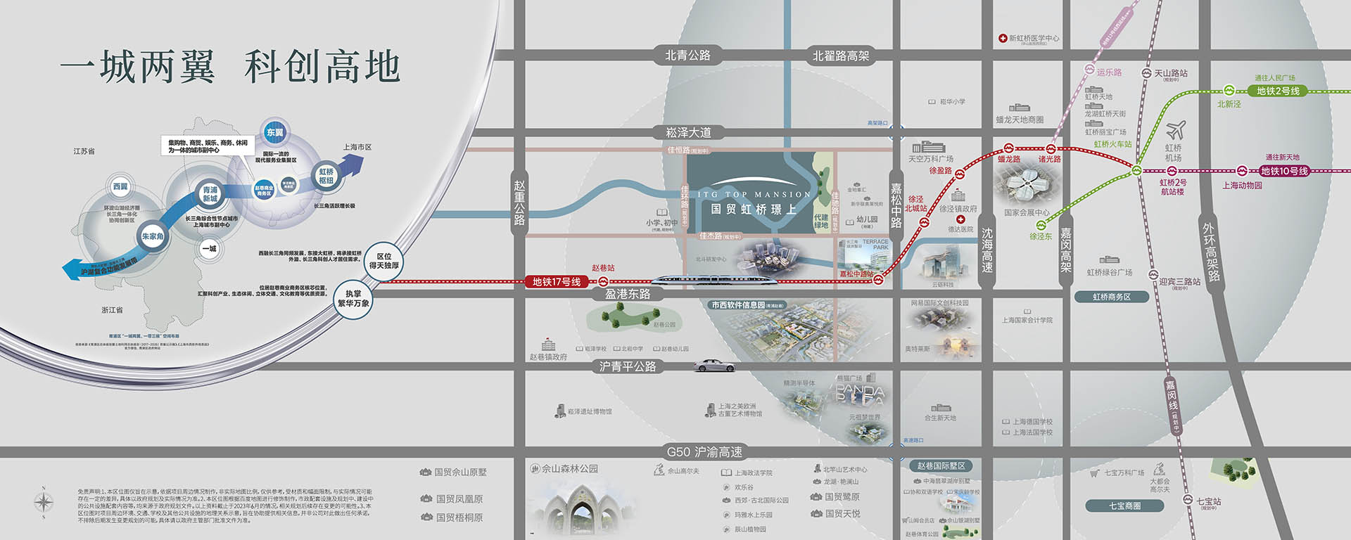 国贸脚步布满整个上海,形成了多个高端的产品系,国贸虹桥璟上占位虹桥核心区域,并通过17 号地铁线串联起三大核心节点,东起徐泾北斗产业基地,西到金泽华为研发基地,中部核心就是赵巷市西信息软件园。