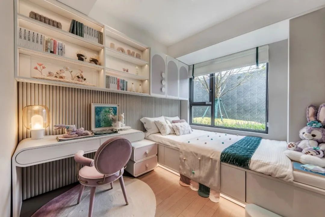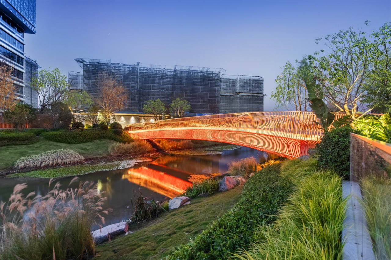 一座约1.8万方的滨河市政公园,家庭露营、亲子玩乐、健身休闲就在家门口,巧妙把水系优势引入小区,比如,三座“岛屿”都有不同主题,并设置了非常丰富的景观节点。这样就形成了内外双公园的场景。