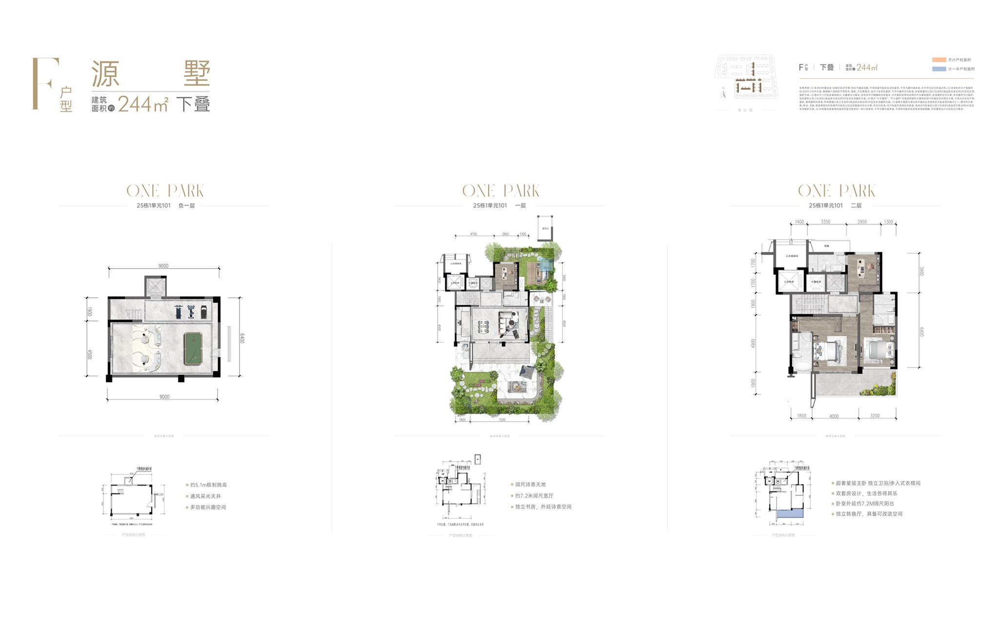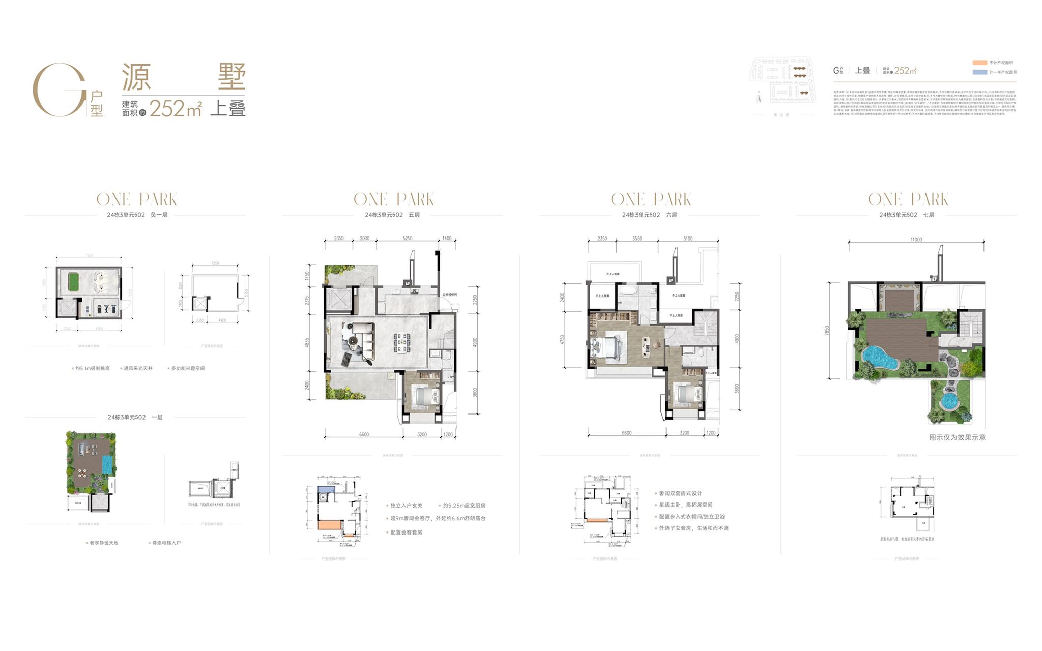 以前瞻性思维优化空间布局以及功能配置,以突破传统叠拼产品的楼层价值差异,上中下叠均能享有地面花园空间,全系保持7.2-9米奢阔开间、5.6米挑高地下室、多套房体系,满足多孩家庭改善需求,通过平层化空间处理,确保不同楼层均能获得均衡品质体验。