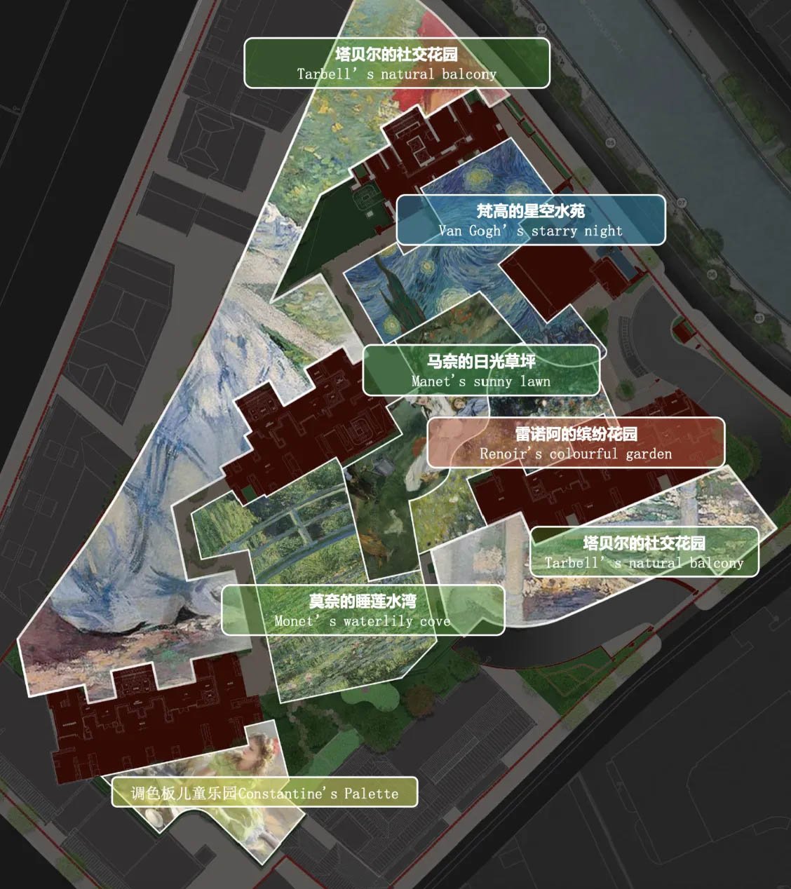 建筑楼体的偏转,形成了围合式的景观布局,名贵树木与大师造景环绕,不仅打造出了连续的中心花园,更因楼栋布局与边界形成夹角,自然衍生出一系列边角院落空间,造就多姿美景。