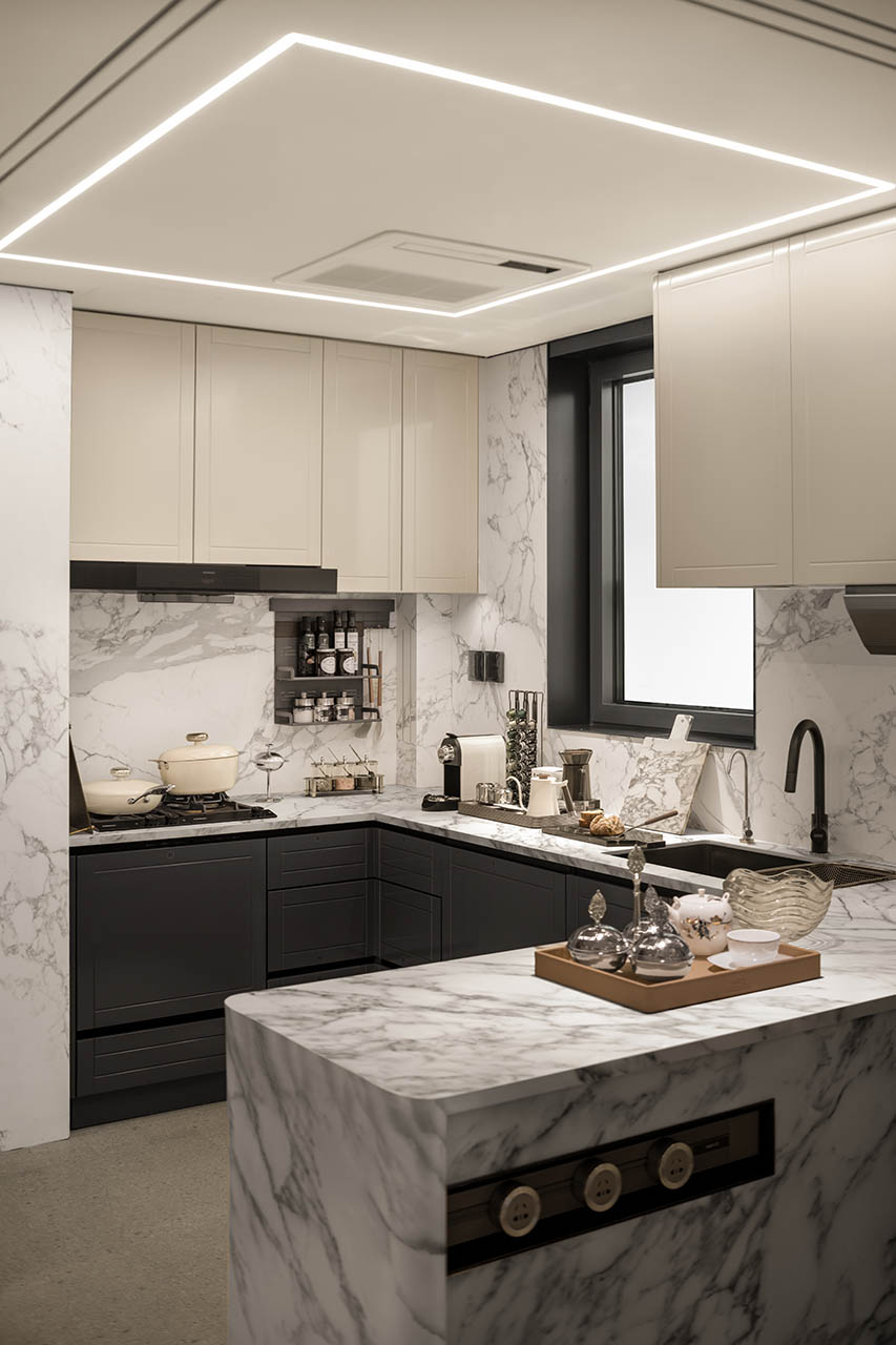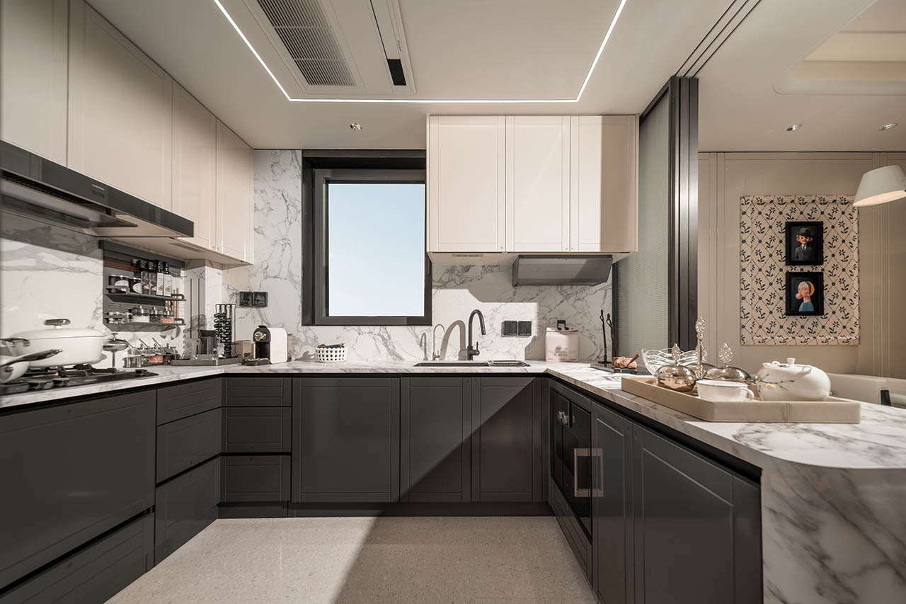 自带约2600㎡双首层会所,配备恒温泳池、私宴厅、酒窖等设施,定制“文明之海、时间之轮”主题艺术品。