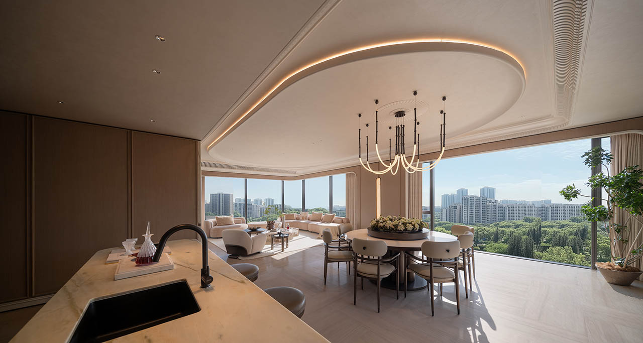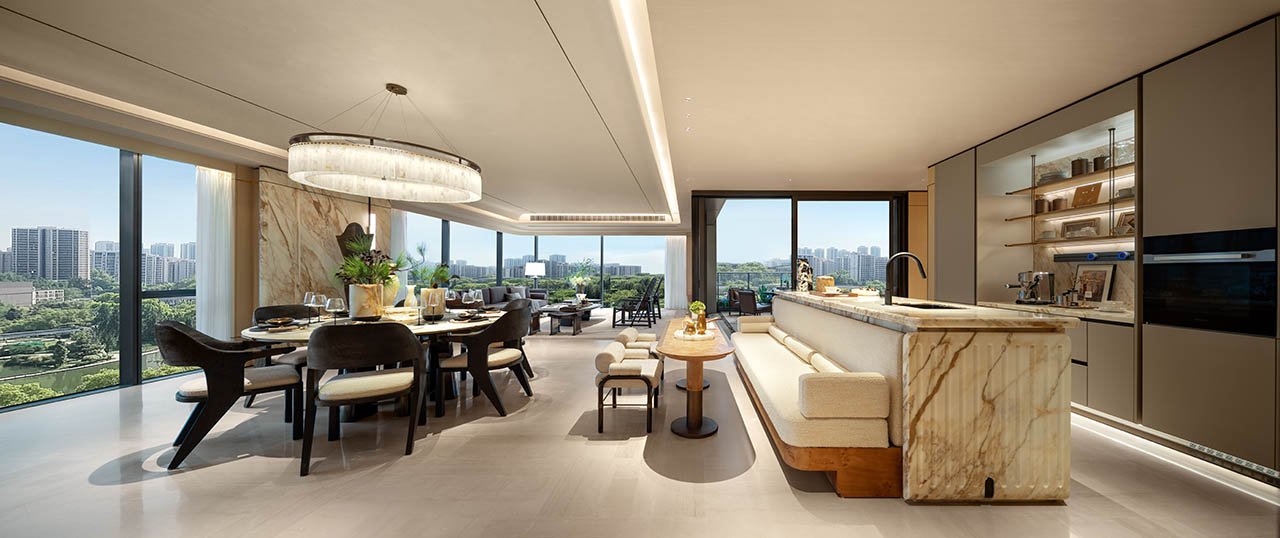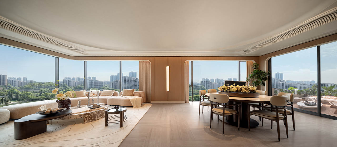围绕“博藏哲学”为源点,巧妙采用“三显七藏”设计手法,在建筑、园林、空间规划以及会所配套中逐渐铺展,呈现了人们所向往的“大隐隐于市”的理想,更有“结庐在人境,而无车马喧”的诗情画意。