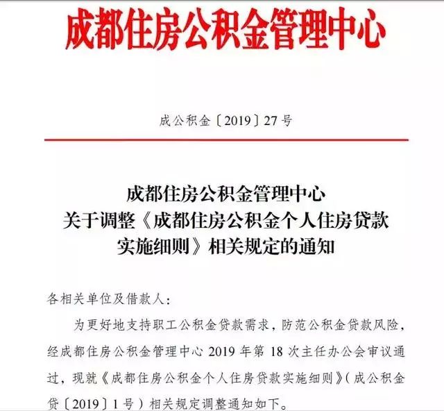 9月26日,成都住房公积金管理中心发布关于调整《成都住房公积金个人住房贷款实施细则》相关规定的通知。