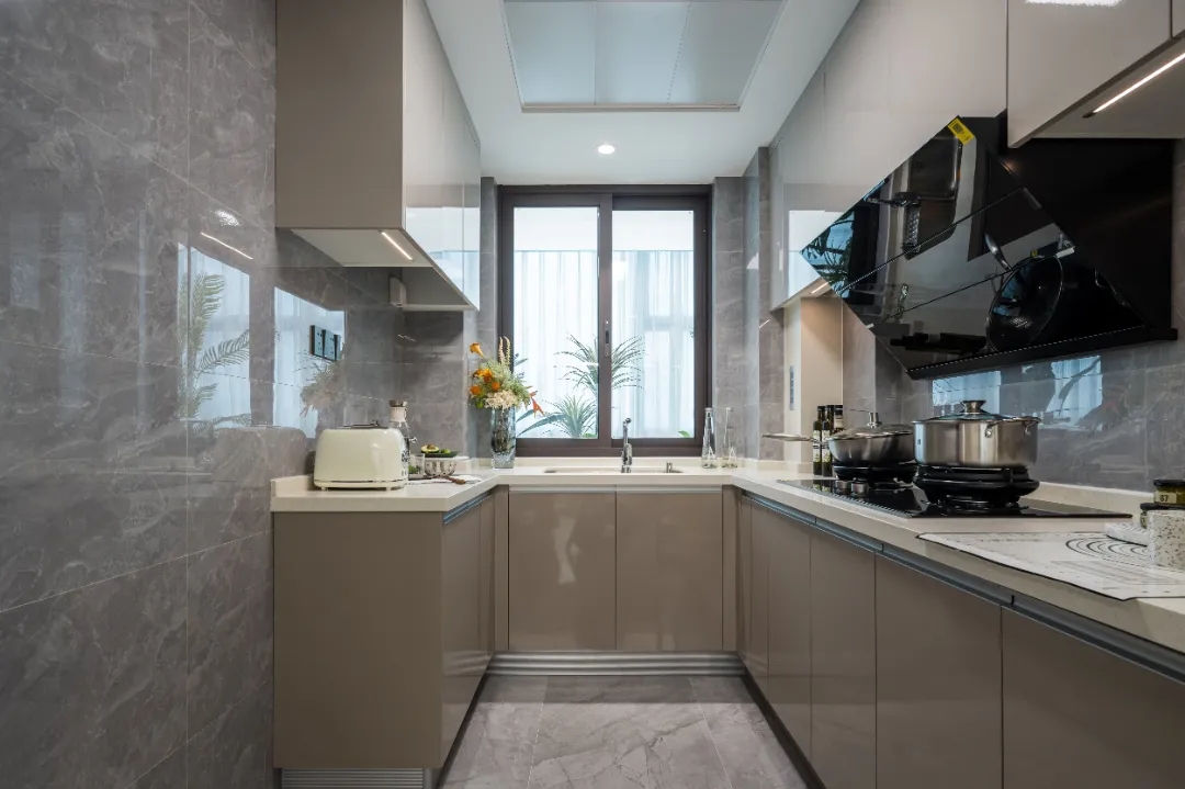 建面约96m²标准的三开间朝南飞机户型,南北通透,1.8米进深,270°采光的阳台;U型厨房,预留双开门冰箱的位置;主卧套房设计,私密性更强,这些都得益于80%的得房率,这个户型的使用空间可以轻松PK市面上大多数百平以上的同款房型。