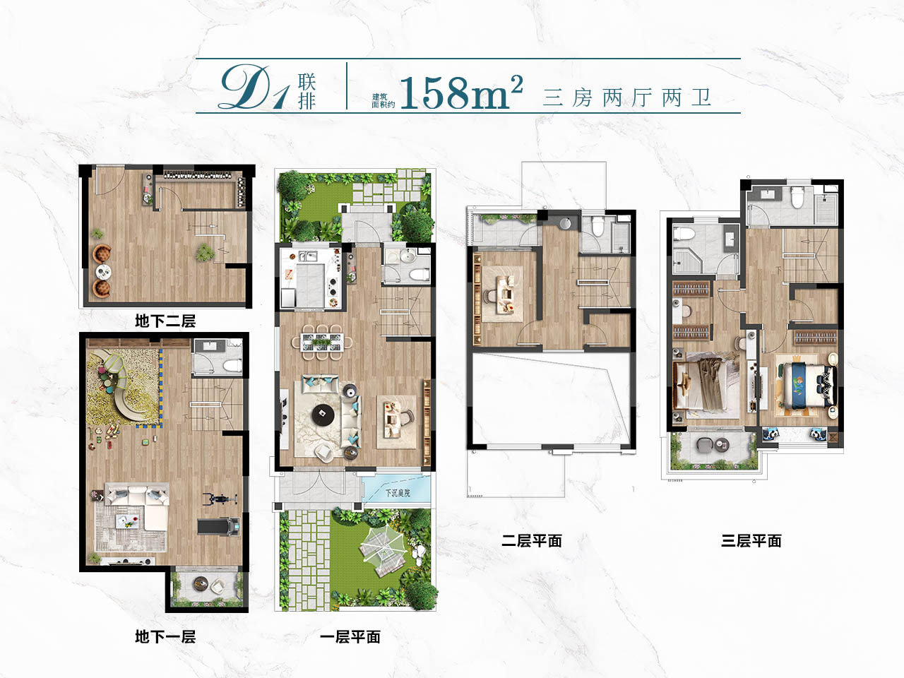 三层联排别墅、五层臻品叠墅、八层墅质洋房等低密居住形态,无一例外都是高端纯粹的产品。其中联排别墅更是打造出了前庭后院的森活场景,并赋予了约6m挑高餐客厅、双层地下室;洋房赠送阁楼等,产品力十足。