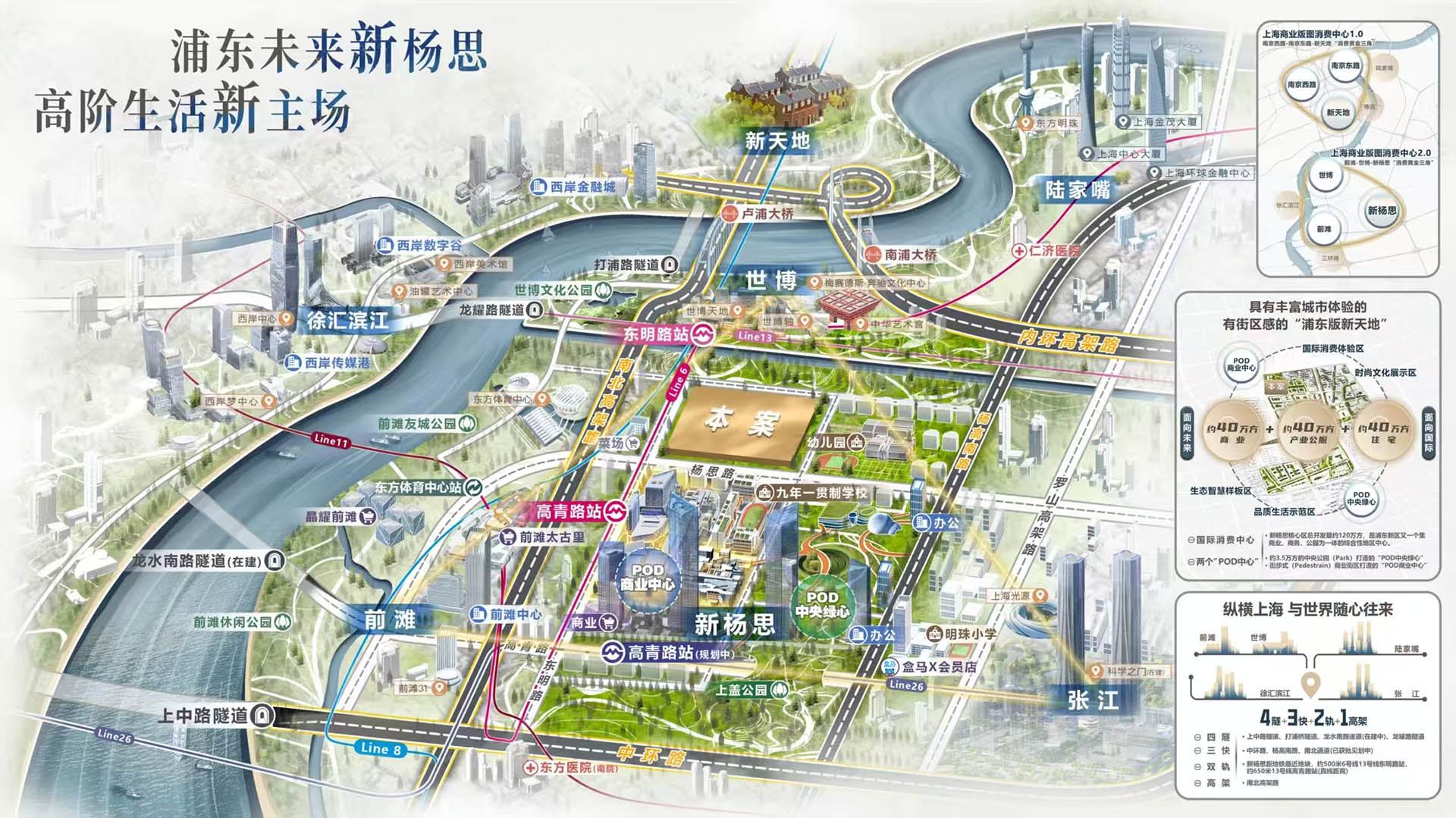 择址新杨思都心,新杨思是上海内中环继前滩、徐汇滨江之后谨存的城市级成片开发区域,且新杨思是全域地处金色中环内的卓越都芯,同时也是站在上海2035愿景之上,打造面向未来的都芯生活方式。