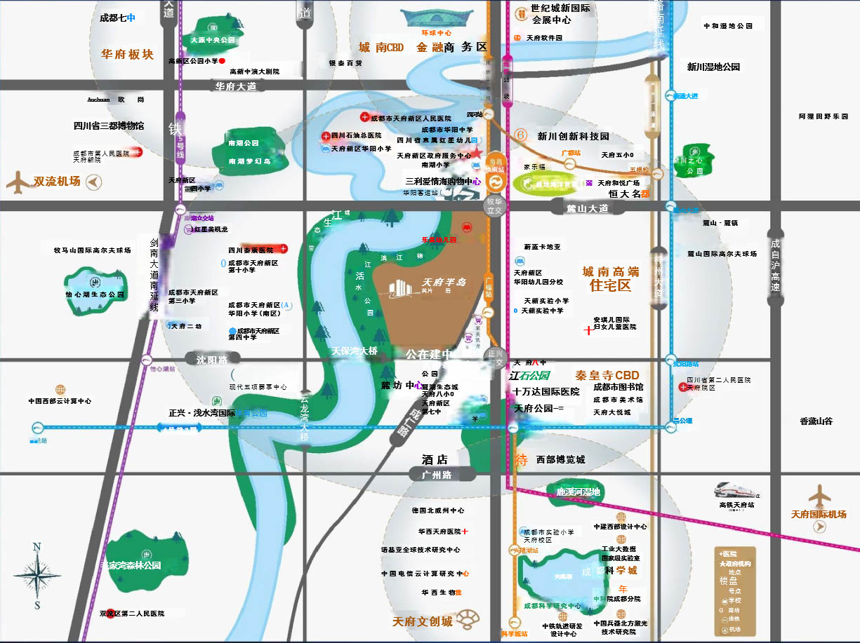 无论是自驾还是公共交通都能满足你的出行,双地铁(18号线站/1号线)、TG11\TG12公共交通接驳地铁站;由贯穿南北的天府大道、梓州大道、剑南大道等共同形成三纵三横的城市主要干道交通网路,多元化的出行方式给业主提供了极高的便利性。