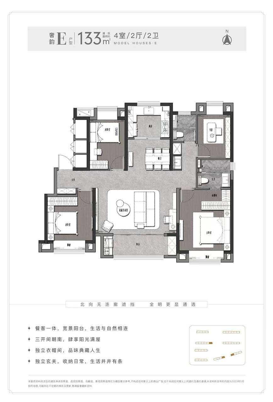 我们在售的户型有约82-133㎡ 的两至四房。
